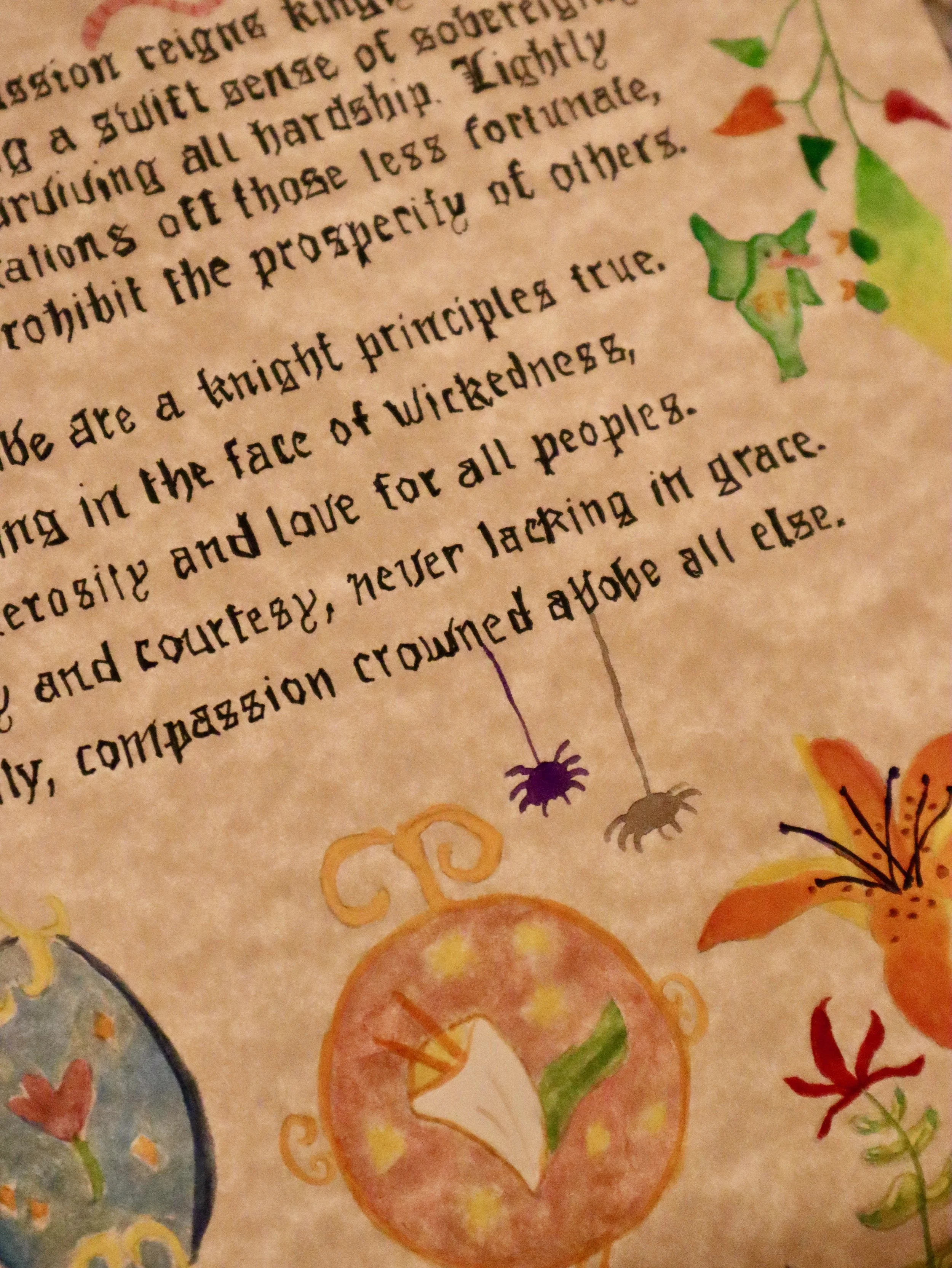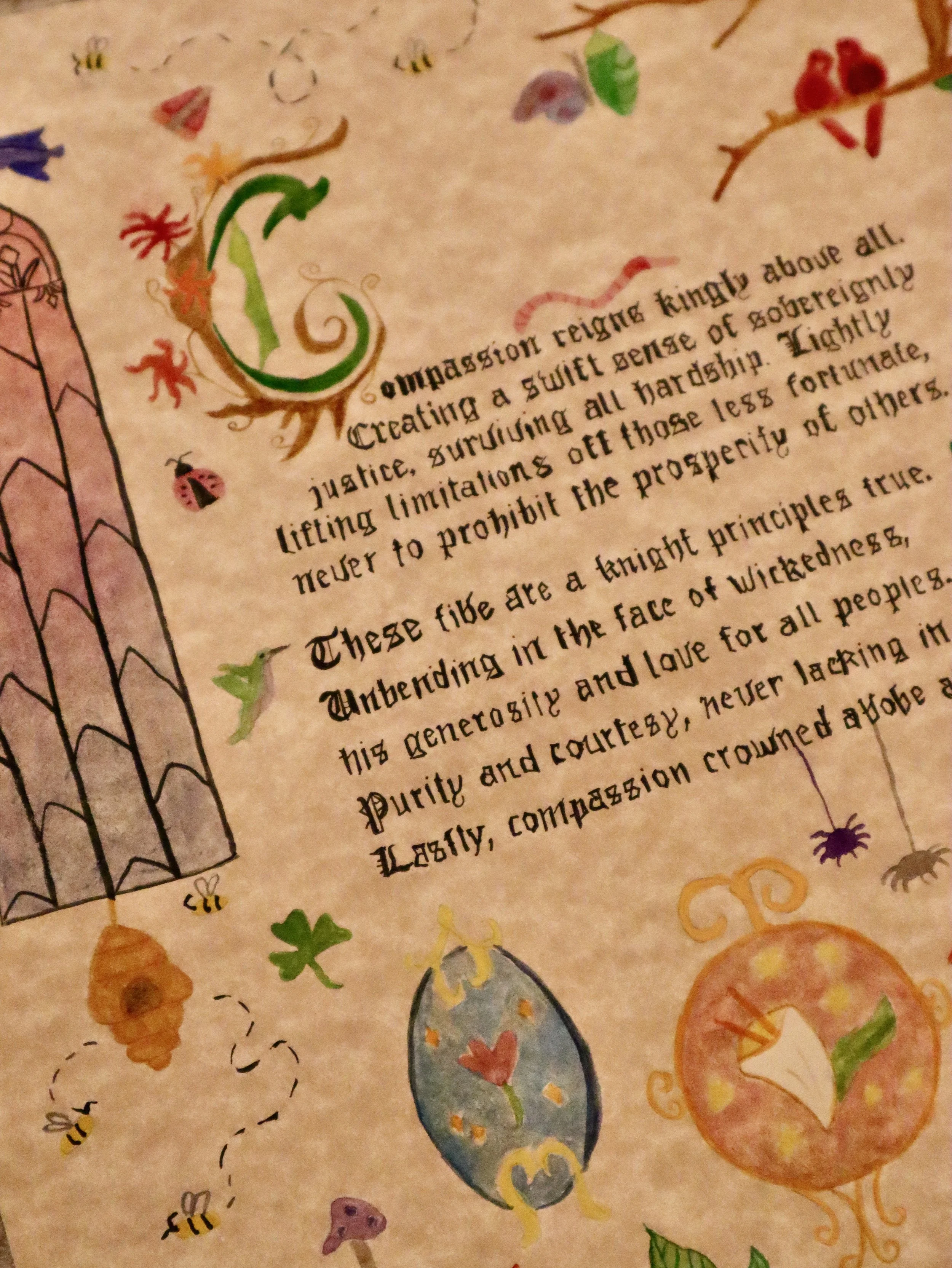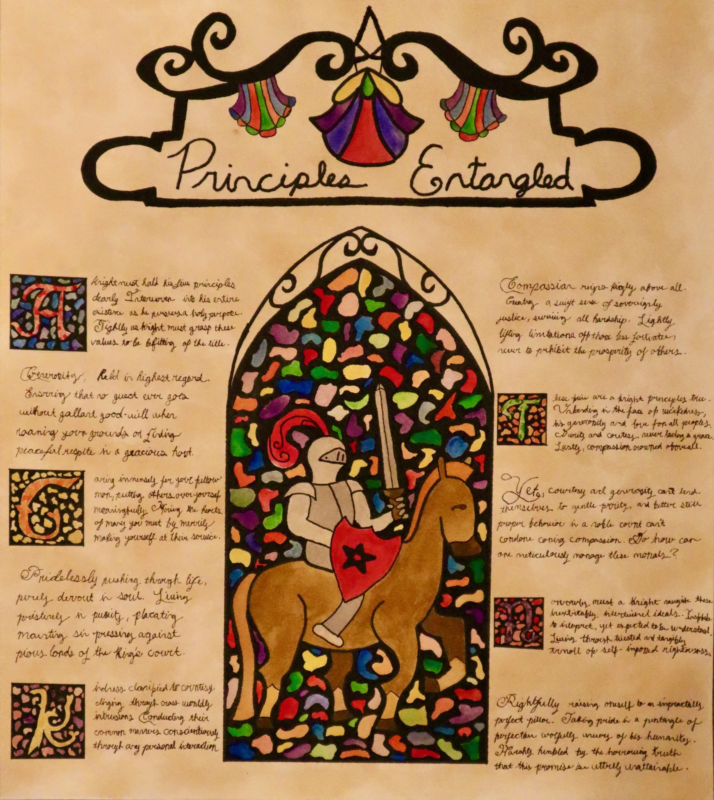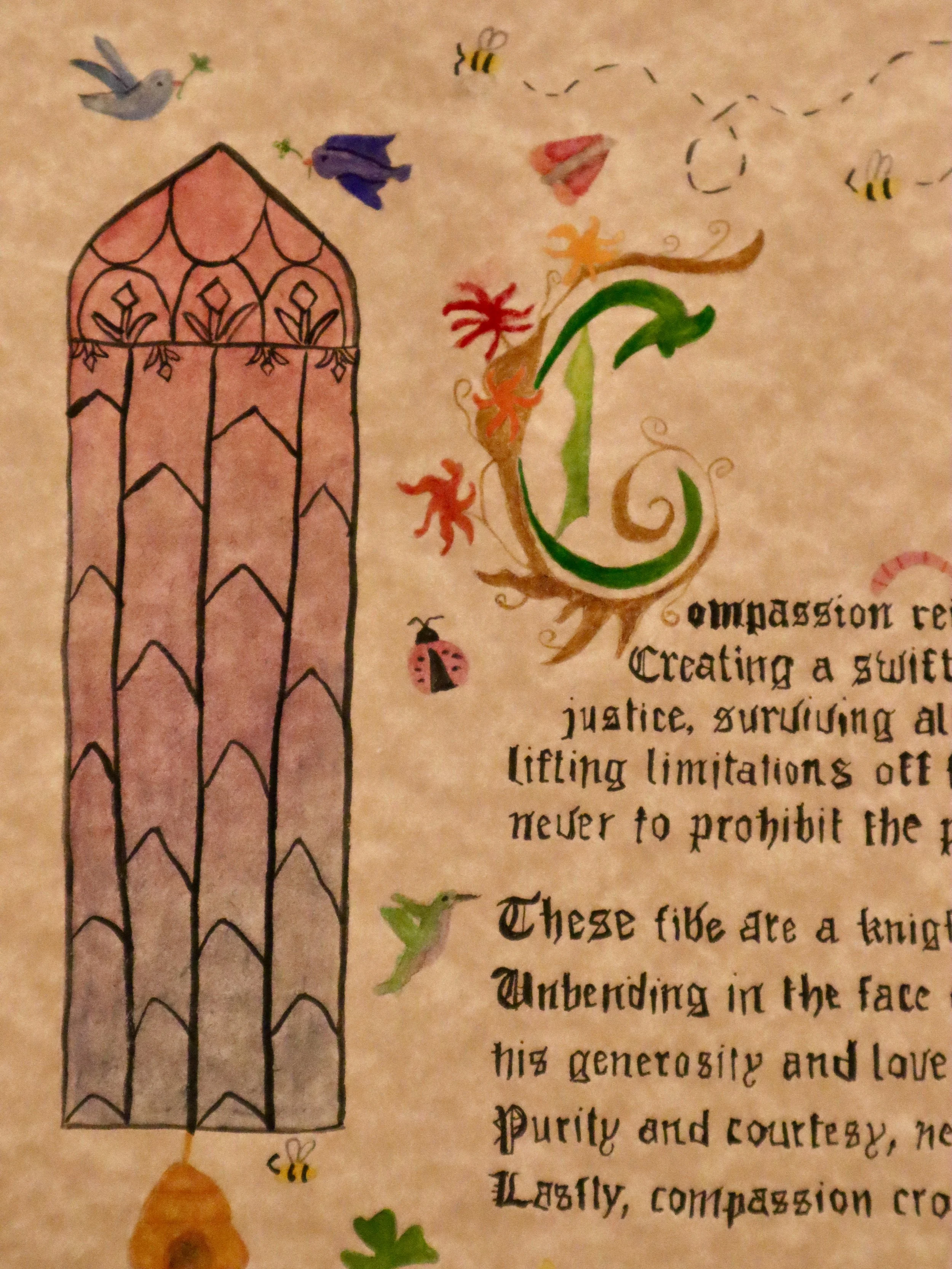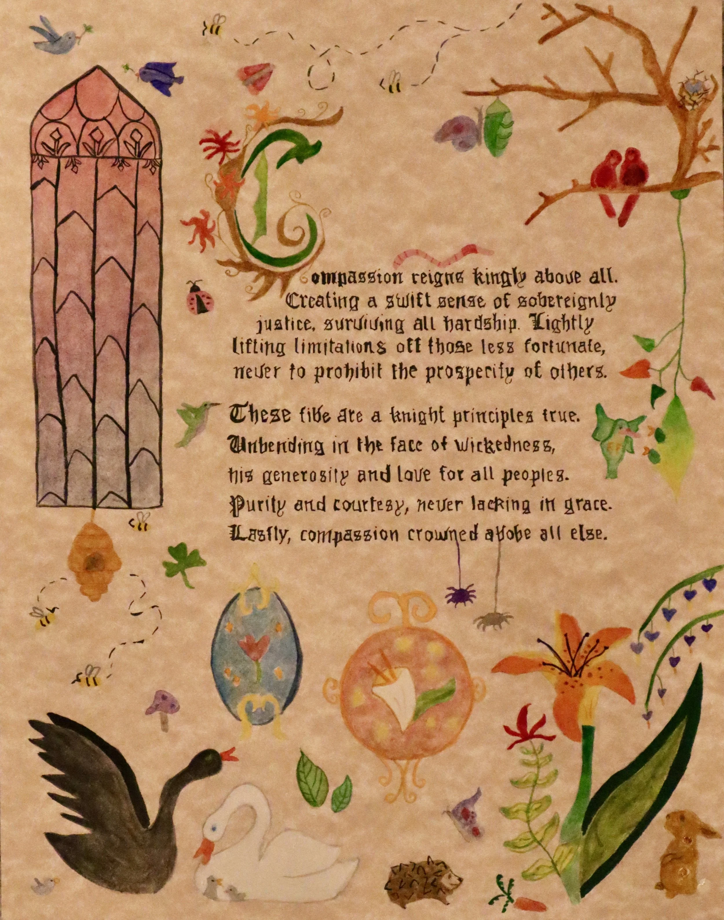 Students were assigned a poem to illustrate in the style of illuminated manuscripts.