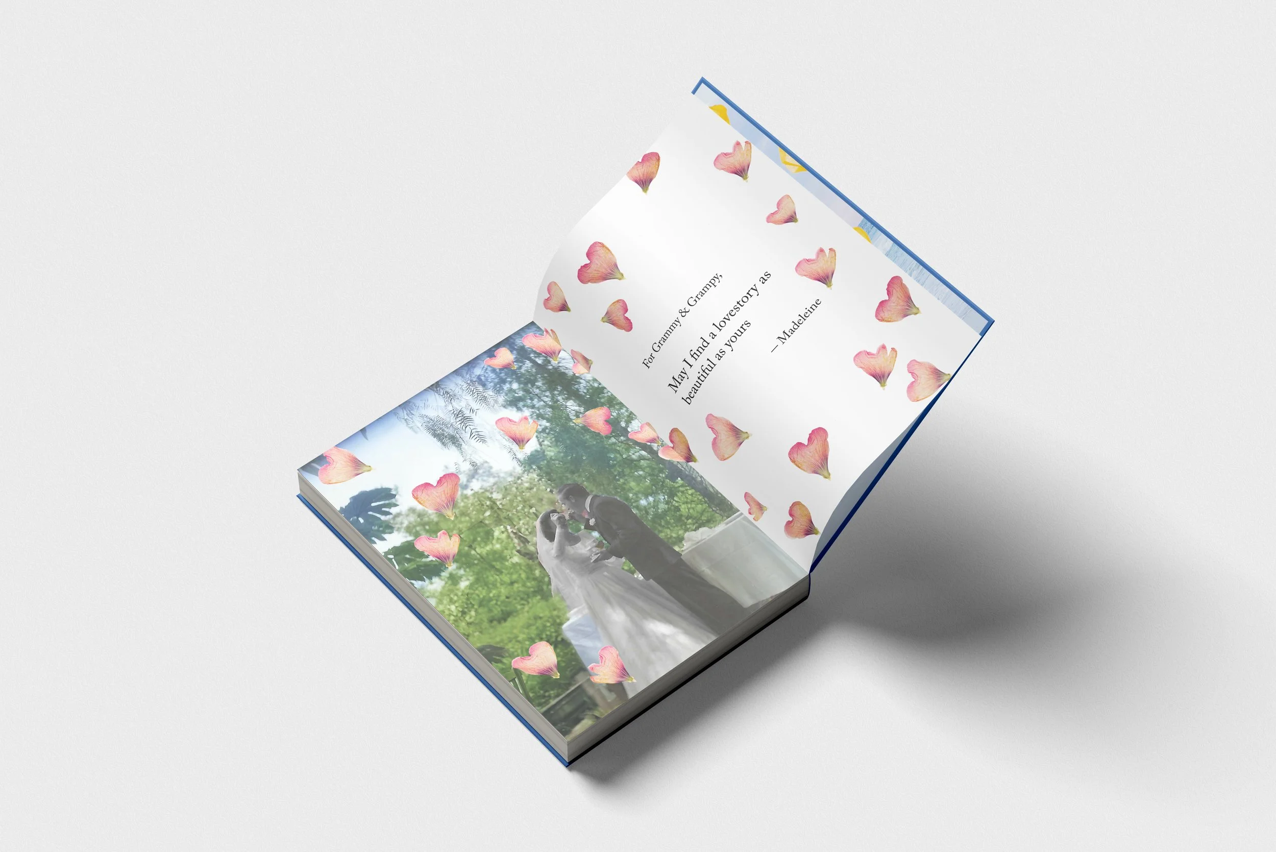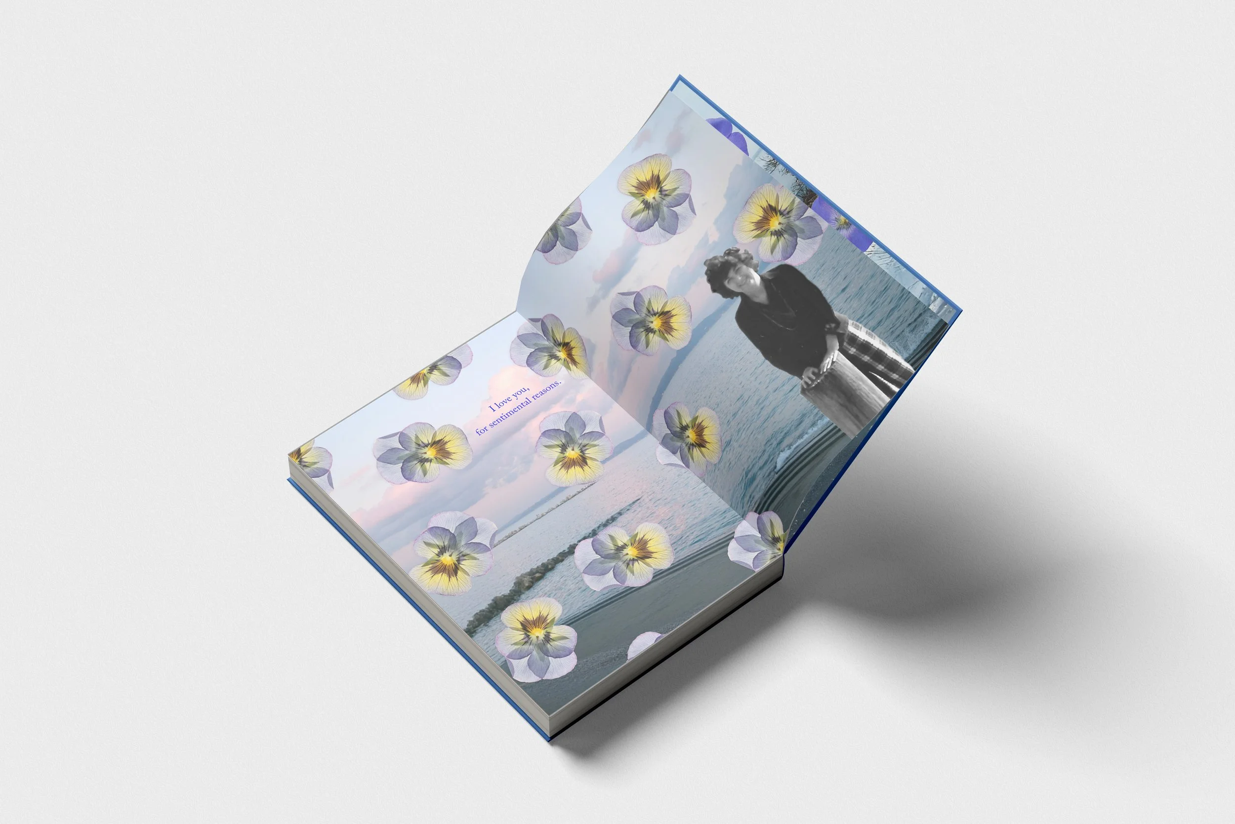 Using “I Love You (For Sentimental Reasons)” as it's emotional foundation, the piece draws inspiration from the era when the song was first released as all the black and white scans are authentic dating back to the 1940’s allowing the textures, tones, and imperfections of the original materials to be seen. The scenes reference the designer’s grandparents’ love story, which unfolded along the cliffs and beaches of California. The imagery centers on the couple in love, collaged with florals and vibrant coastal sunsets. Mountains, rocky shorelines, and florals intertwine as symbolic motifs; the florals speak to tenderness and devotion, while the rugged coastline represents endurance and timelessness. The sunset acts as a unifying presence with it’s gradient light embodying the quiet beauty of lasting love. A collage style was chosen for it's ability to layer emotion, history, and imagery in a single frame. Each spread feels like a visual memory, leading the result to be a tactile, poetic composition that celebrates both a personal family story and the universal sentiment of enduring love.